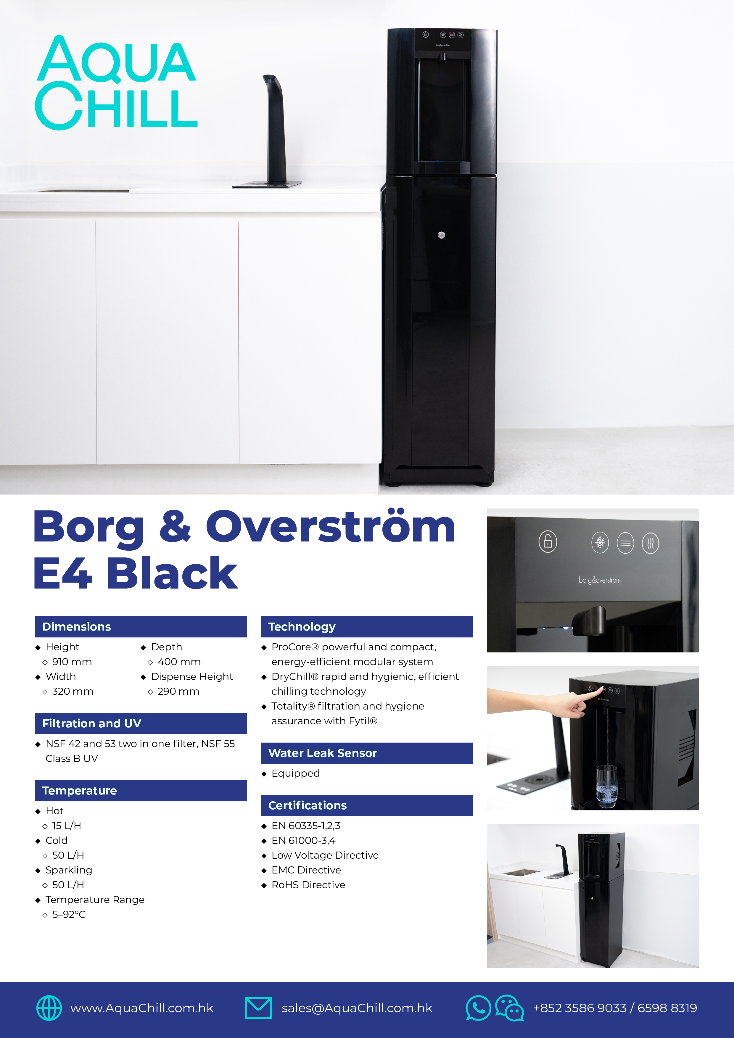 Sustainably superior, the E4 is the next evolution in premium water dispensing, combining energy-efficiency with powerful performance in every pour. Featuring our exclusive modular ProCore® system, advanced DryChill® rapid cooling technology and antimicrobial touch panel protection, the E4 offers a 3-way versatility and is perfect for filling water bottles, glasses and carafes with freshly-filtered chilled, ambient, sparkling or hot water, at the touch of a button.